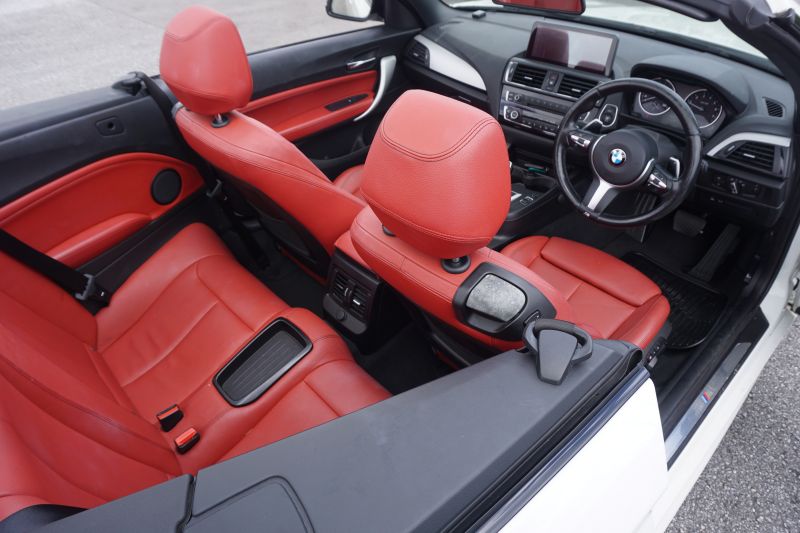特徴的な本革赤シートは、ボディーカラーであるアルピンホワイトⅢのクールな印象と対比をなし、強いインパクトを引き出します。